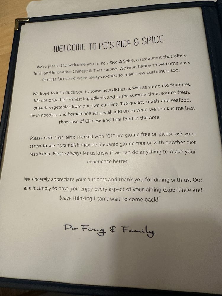 Po’s Rice and Spice Menu